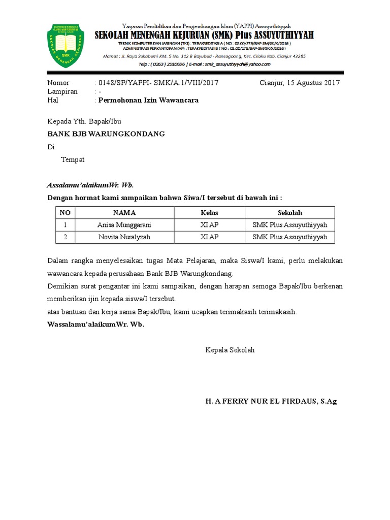 Demikian keterangan ini saya buat dengan sebenar benarnya sebagai bukti telah melakukan wawancara. Dengan tujuan agar bank tersebut membayarkan sejumlah uang yang tertulis kepada orang yang membawa surat atau yang namanya tertulis di surat cek tersebut. Contoh surat pengantar wawancara penelitian have an image associated with the other.contoh surat pengantar wawancara penelitian it also will include a picture of a sort that might be seen in the gallery of contoh surat pengantar wawancara penelitian. Pendidikan agama islam jurusan : Sepanjang pengetahuan saya tidak terdapat karya atau berpendapat yang ditulis atau diterbitkan orang lain kecuali sebagai acuhan atau kutipan dengan mengikuti tata penulisan karya ilmiah yang telah lazim.
